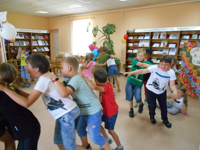 Лето подходит к концу, скоро школьники сядут за свои парты, и начнется новый учебный год. Завершается и наша программа летнего чтения "Лето. Солнце. Сто фантазий". Сколько интересного произошло в нашей библиотеке за эти три месяца! Летний кинозал, театр на столе, мастерская юных художников, - каждый мог выбрать занятие по душе. Сегодня мы подводили итоги этого веселого лета. К нам на праздничную программу "Лето на пять с плюсом" пришли наши дорогие читатели, наши друзья. Мы подготовили для них много интересных конкурсов, игр и викторин. В гости к ребятам пришла Царевна Несмеяна, сначала она скучала и даже плакала. Но наши читатели заразили ее своим хорошим настроением и так увлекли, что в конце праздника Несмеяну было не узнать. Самые активные наши помощники получили призы, а потом было сладкое угощение с тортом.