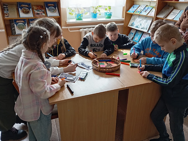 На разноцветных звездочках они писали свои поздравления и пожелания любимой газете, а затем прикрепляли их на нашу поздравительную открытку.
